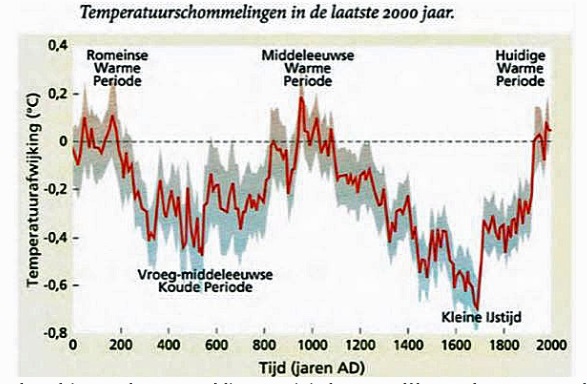 warmere en koudere perioden in de afgelopen 2000 jaar.
