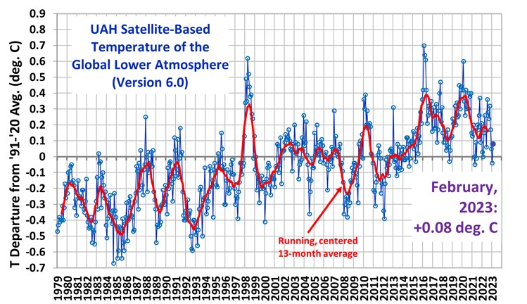 Sinds de piek in 1998 is de gemiddelde wereldtemperatuur lager en vanaf 2016 is de trend licht dalende. Opmerkelijk daarbij is dat de wereldwijde CO2-uitstoot sindsdien hoger is. Duitsland opent steenkool- en bruinkoolcentrales, daar er een energietekort is, mede door het recent sluiten van de laatste kernenergiecentrales. China en India bouwen veel kolencentrales. Nederland, het speldenknopje, gaat zeer veel geld uitgeven om het wereldklimaat te redden door CO2-uitstoot te verminderen. Weggegooid geld?